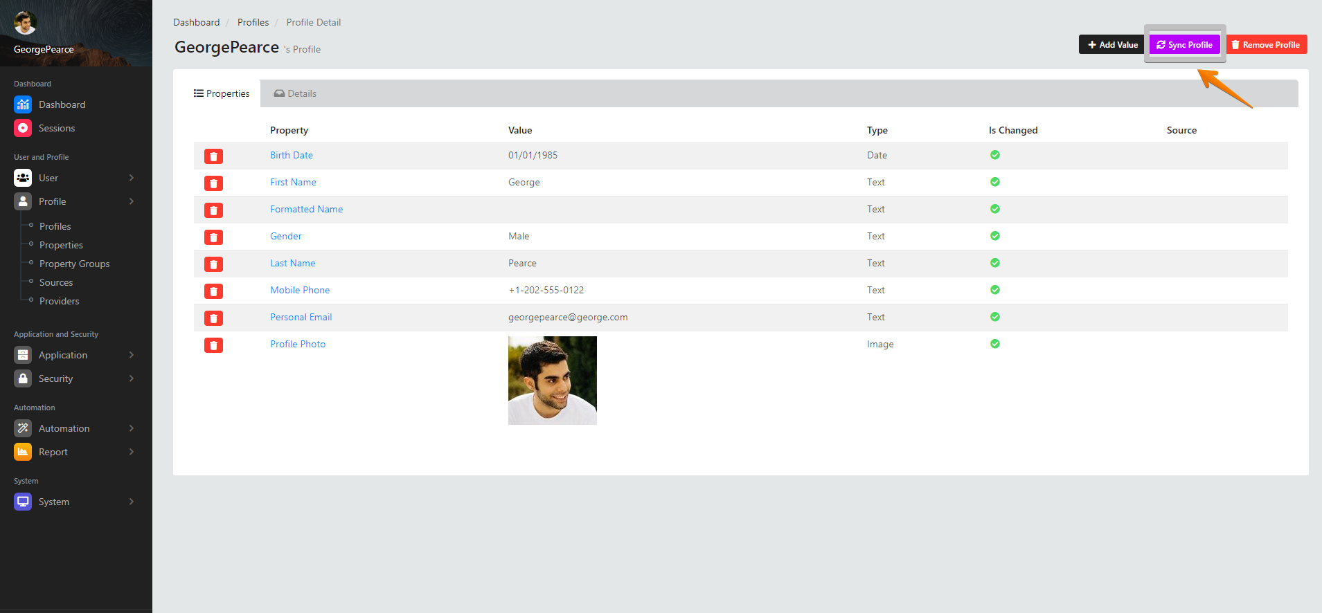 "Sync Profile (Profili Senkronize Et)" butonuna tıklandığı takdirde profili senkronize işlemini gerçekleştirir ve başarılı bir şekilde gerçekleştiğine dair onay bildirimi çıkarır.