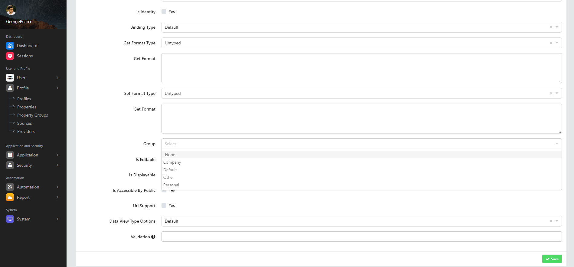 Bütün alanlar doldurulduktan sonra sayfanın alt tarafında bulunan "save (kaydet)" butonuna basılarak yeni bir özellik ekleme işlemi tamamlanmış olacaktır. Yeni bir profil özelliği başarılı şekilde kaydeldiği takdirde, özellik ekleme işleminin başarılı şekilde gerçekleştiğine dair onay bildirimi çıkarır.