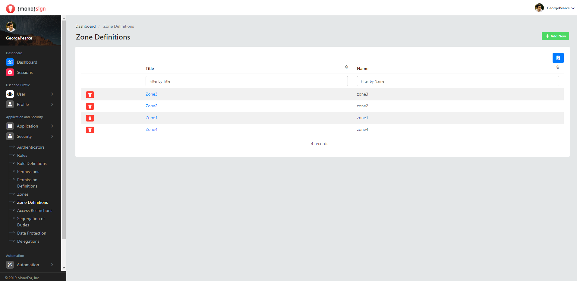 Zone Definitions (Bölge Tanımları) sayfasında, bölge tanımlarının yan tarafında bulunan kırmızı buton o bölge tanımını silmenizi sağlar. Butona tıklandığında "Are you sure? (Emin misin?)". "This zone definition will be removed!. If you remove this zone definition, it will be deleted permanently (Bu bölge tanımı kaldırılmış olacak. Eğer bu bölge tanımını kaldırırsanız, kalıcı olarak silmiş olacaksınız)." şeklinde uyarı çıkarır. "Yes, delete it (Evet, sil)" butonuna bastığınızda bölgeyi silme işlemini gerçekleştirirsiniz. Bölge silme işlemi başarılı birşekilde gerçekleştiği taktirde karşınıza onay bildirimi çıkarır.
